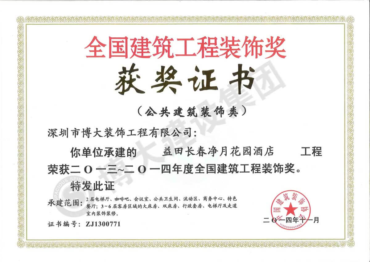 中國建筑工程裝飾獎(益田長春凈月花園酒店-裝飾)