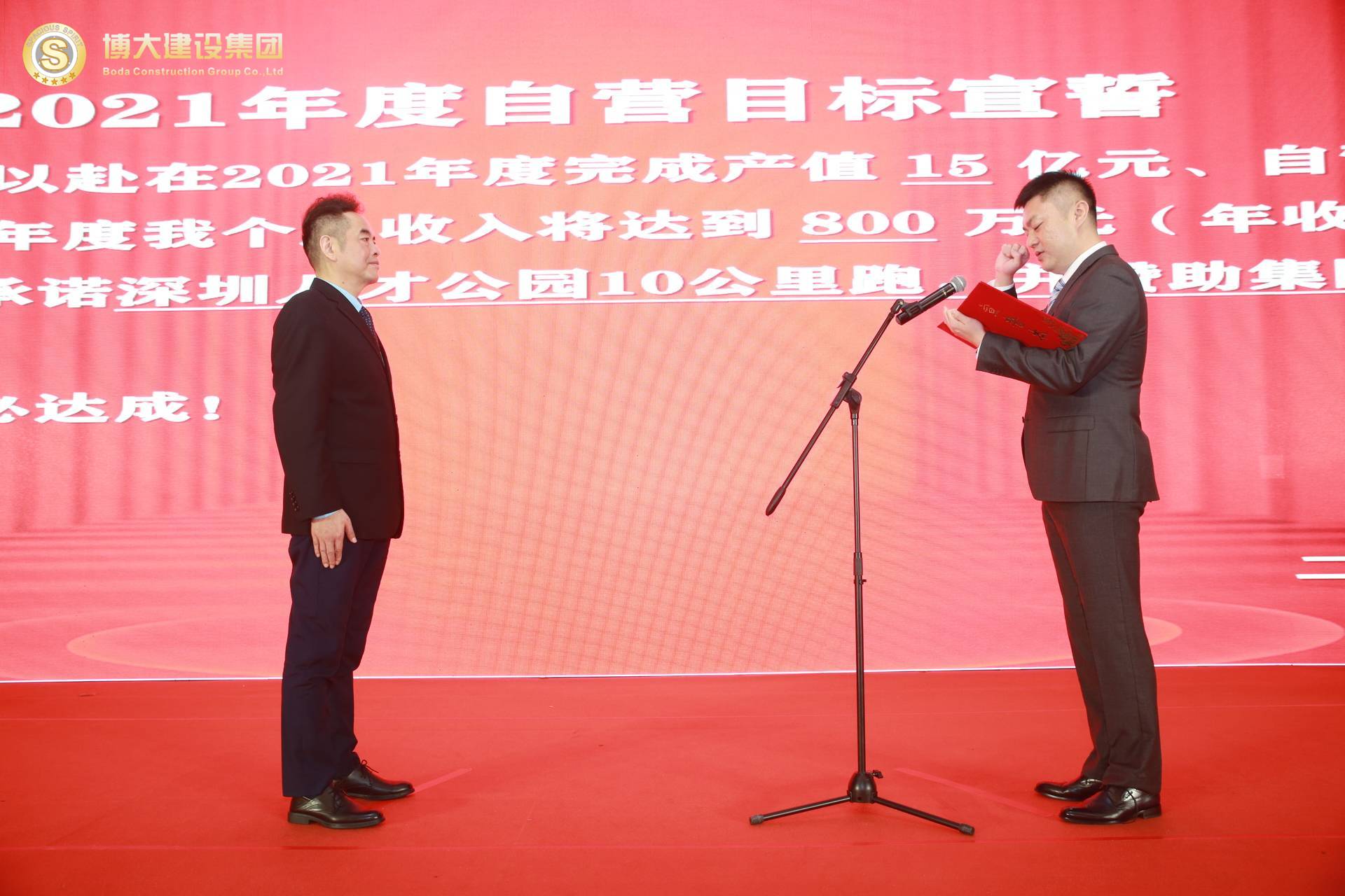 各戰區、中心、工廠負責人逐一上臺,在全體合伙人的見證下對2021年的部門目標和個人收入目標莊嚴宣誓,洪董代表集團對股東宣誓!